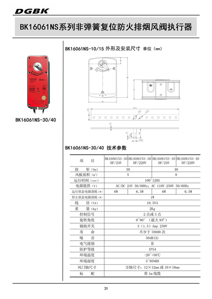 • BK16061NS 系列非弹簧复位防火排烟风阀执行器